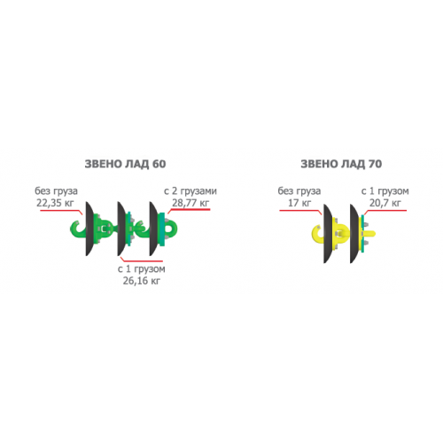 навешивания одного или двух грузов массой 2,6 кг каждый):